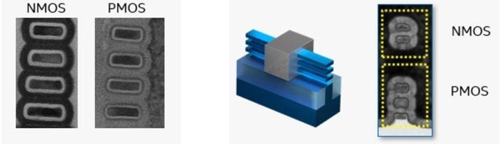 晶體管的最小的結(jié)構(gòu)寬度在22nm之前,通常是柵極寬度,被稱為特征尺寸。隨著晶體管面積的日益縮小,特征尺寸和廠家的命名逐漸脫節(jié),而柵極寬度也不再是晶體管的最小結(jié)構(gòu)寬度,例如在FinFET中,F(xiàn)in的寬度通常是小于柵極寬度的,在GAA堆疊納米片晶體管中,納米片的厚度也是要小于柵極寬度的。